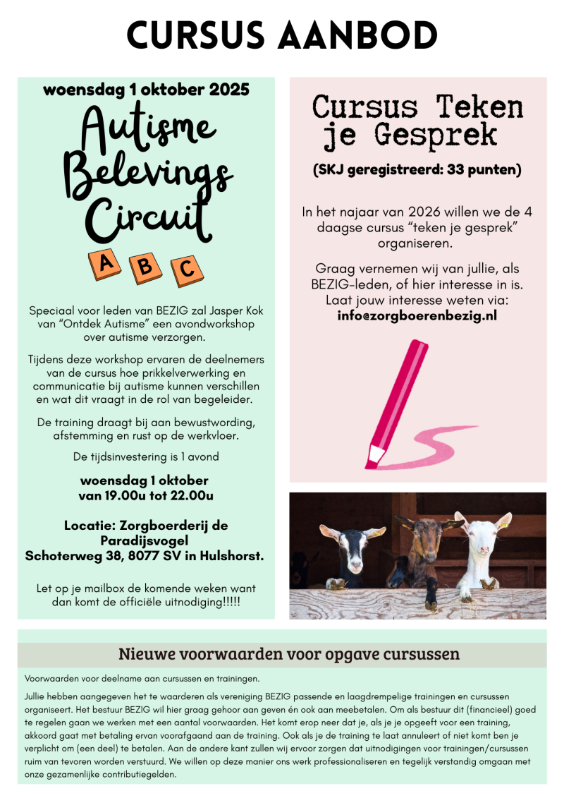 Als BEZIG vinden wij het belangrijk om goede en interessante cursussen en workshops te blijven aanbieden tegen een scherpe prijs. Ook nu hebben we weer een leuke en interessante cursus weten samen te stellen!